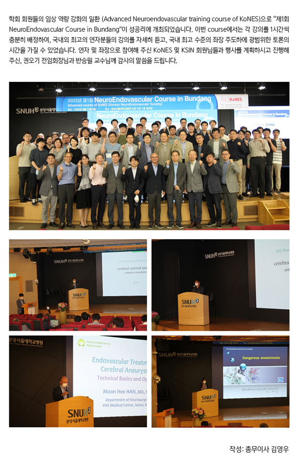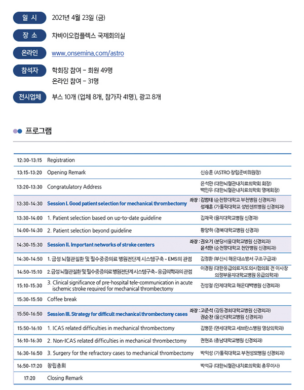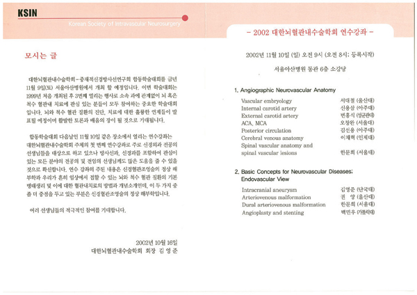 대한뇌혈관내수술연구회지 2권 1호 발행