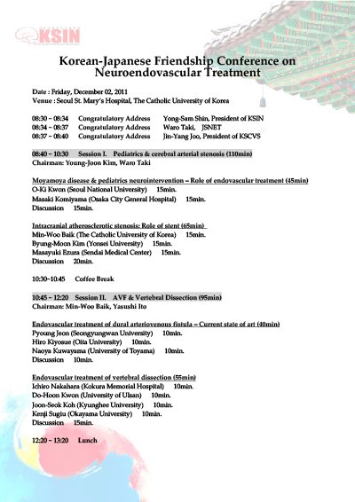 대한뇌혈관내수술연구회지 2권 1호 발행