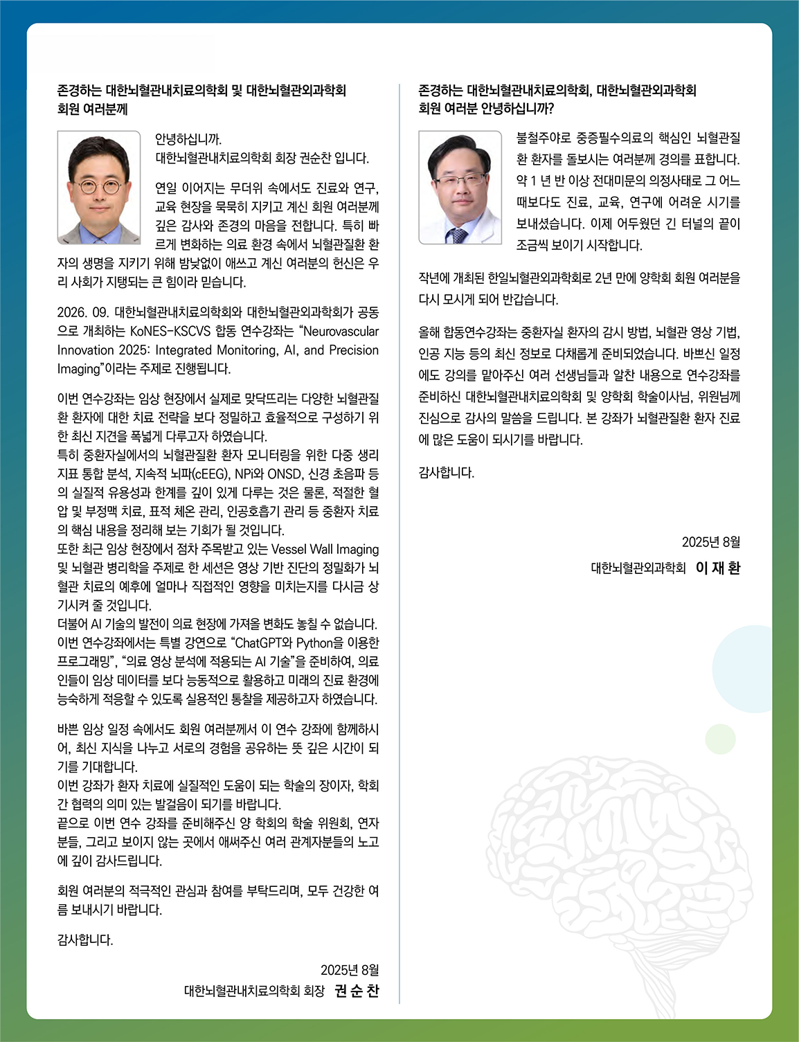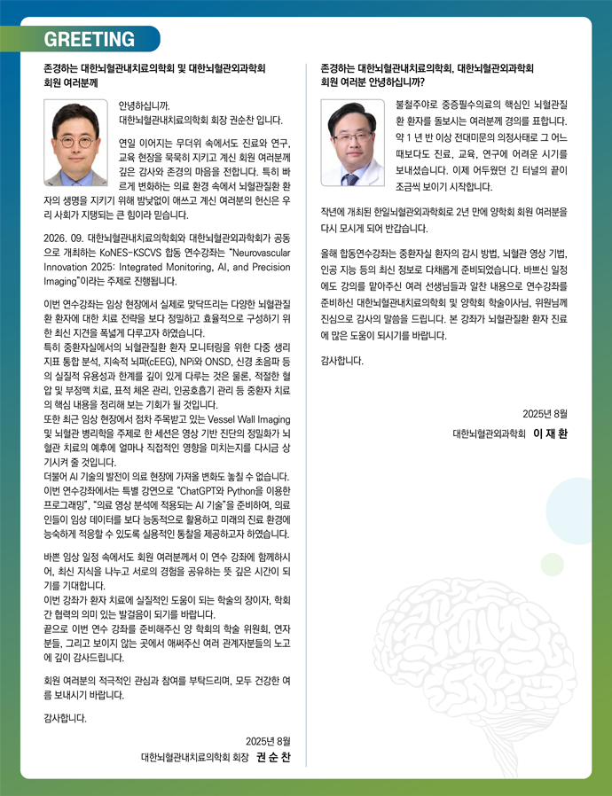 대한뇌혈관내치료의학회 대한뇌혈관내치료의학회·대한뇌혈관외과학회 2025 KoNES-KSCVS 합동 연수강좌